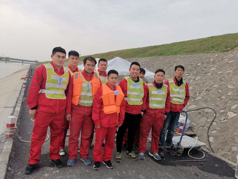 在这次南水北调工程水下修复项目中,新乡市鸿源潜水工程有限公司高度重视,以专业的技术和实力工作,在上班前都会开安全会,讲解水下工作要注意的事项和工作内容。 工作人员在 开始工作时,要求必须潜水员配戴上潜水装具经自己和专业人员检查合格后 ,才能下水 工作。下水后对要修复的位置进行录像检测,检测破损情况制定修复方案。对破损部位进行风镐破拆,把破拆后的水泥衬砌板打捞出水再对破损处进行模板安装和水下混凝土浇筑,等到混凝土凝固后折模后,再录像检测合格后完工。